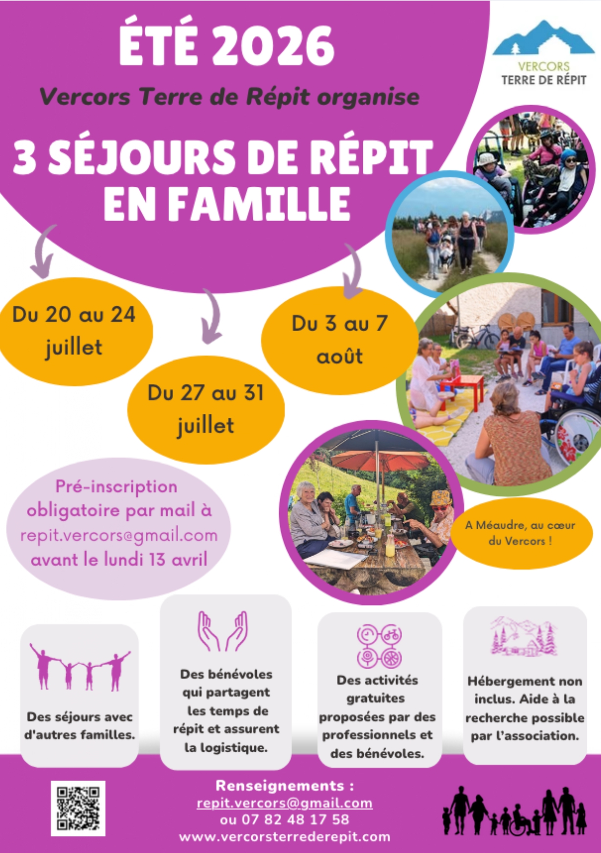 Les familles qui n’ont encore jamais participé à un séjour avec Vercors Terre de Répit seront contactées par téléphone. Merci de nous laisser un numéro pour vous joindre.